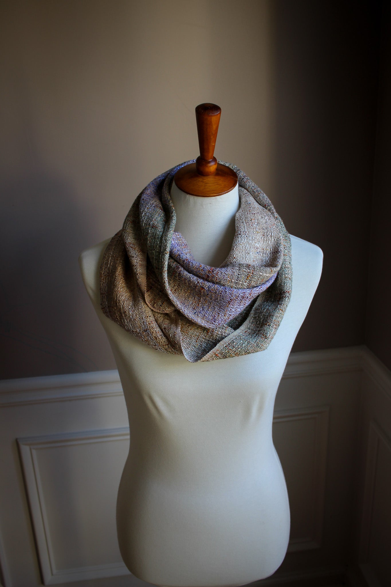 This listing is for a half width, double loop cowl from the Petal & Tide warp - my favorite size cowl!